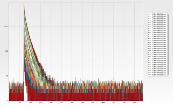 測(cè)鈣鈦礦太陽能電池器件的壽命,此壽命在幾十幾百納秒,以皮秒脈沖激光器搭配時(shí)間相關(guān)單光子計(jì)數(shù)器(TCSPC),可以完美覆蓋亞納秒到10μs時(shí)間尺度的熒光壽命測(cè)量。