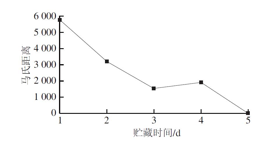圖5 腐敗前各貯藏日與腐敗基準(zhǔn)間的馬氏距離變化趨勢