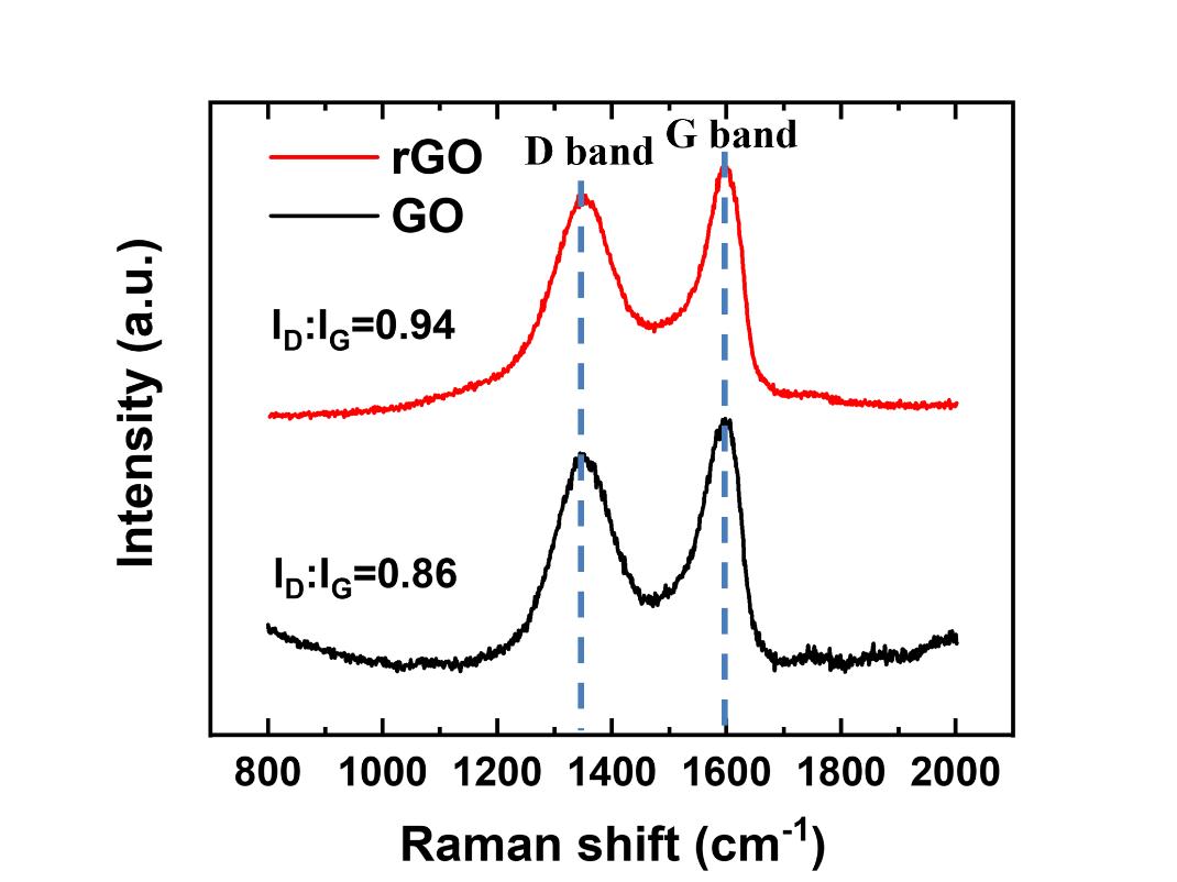 拉曼光譜用于分析氧化石墨烯薄膜的溫度傳感機(jī)理,本文中的拉曼光譜數(shù)據(jù)采用北京卓立漢光儀器有限公司Finder 930系列全自動(dòng)化拉曼光譜分析系統(tǒng)檢測(cè)完成。石墨烯的拉曼峰強(qiáng)ID/IG比值增大,說(shuō)明氧化石墨烯的親水官能團(tuán)被去除,表面產(chǎn)生了更多的缺陷。