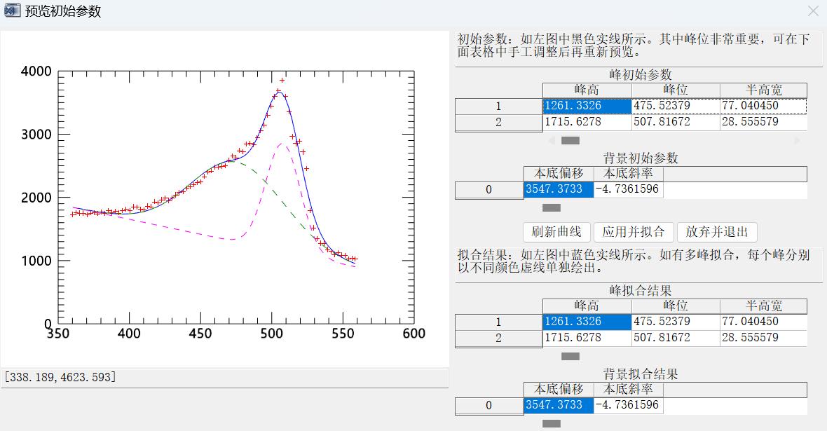 卓立漢光自主開發(fā)了晶化率自動計算軟件,可以實現(xiàn)自動分峰擬合和晶化率計算,軟件操作簡單,易于使用,晶化率擬合結(jié)果如圖2所示,自動計算結(jié)果可知晶化率為33.52%.