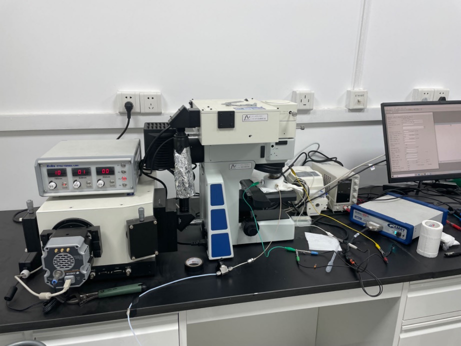 本拉曼系統(tǒng)由卓立漢光提供,型號為Zolix RTS-2。該系統(tǒng)是一款可定制化的拉曼系統(tǒng)。系統(tǒng)配備了RX-50M-S正置顯微鏡模組,為拉曼系統(tǒng)提供共聚焦模式以增強拉曼信號,同時有10X,50X和100X的物鏡。激光系統(tǒng)有兩路(后期可擴展第三路),包括532 nm和785 nm激光。系統(tǒng)包括各種不同鏡片以及包括狹縫、分光計等組成的光路系統(tǒng)。信號的采集和分析采用的是Andor iVac-316-CCD以及卓立漢光 Omni-λ3008i光譜儀。該系統(tǒng)為高質量光譜信號的采集提供了保障。