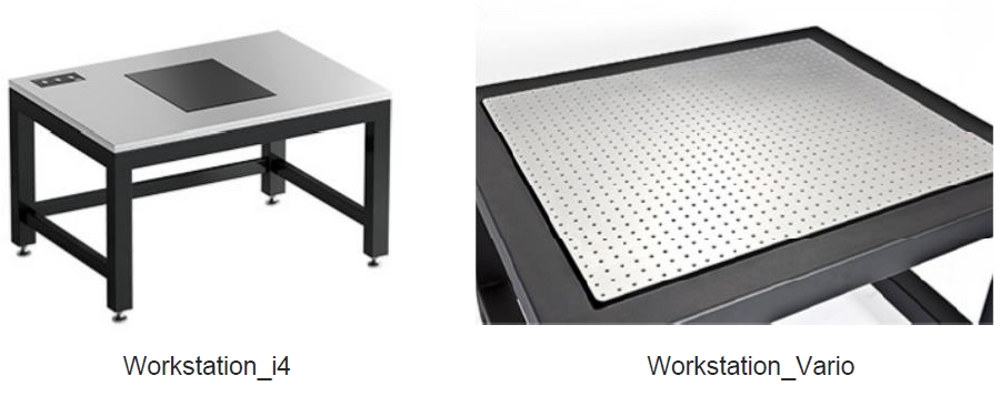 Workstation_Vario 系統(tǒng)配有鋼框架嵌入式光學(xué)實驗板作為工作桌面。具有擴展性,周邊框架可用于隔音罩的安裝。與Workstation_i4 相比,這些版本適用于更大、更重的應(yīng)用程序。