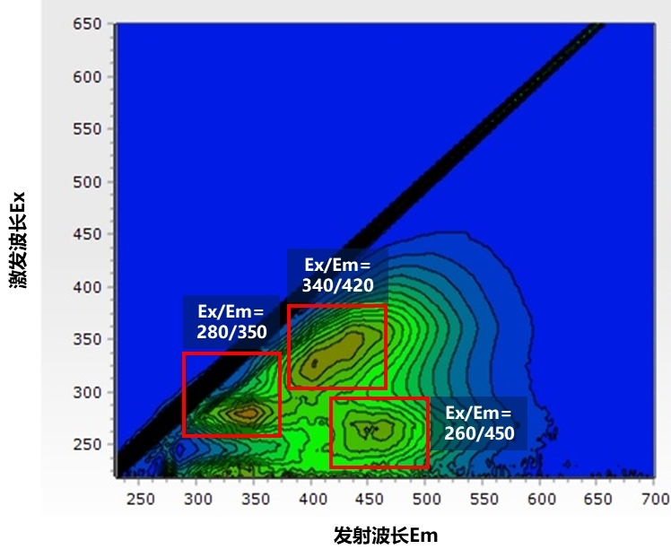 圖1.某工廠水樣三維熒光光譜中的污染物熒光指紋