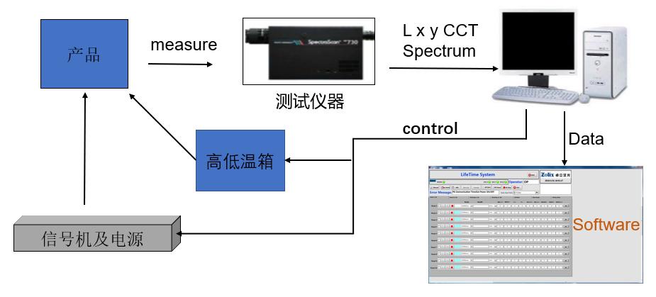 卓立漢光Micro-LED壽命測試系統(tǒng)通過模擬Micro-LED在實際使用過程中可能遇到的各種環(huán)境條件,對Micro-LED進行加速壽命測試。系統(tǒng)采用高精度的運動模組,能夠精確控制測試儀器的位置和運動軌跡,確保測試的精確性。同時,系統(tǒng)配備高精度的溫控模塊,能夠精確控制Micro-LED的測試溫度,模擬不同的溫度環(huán)境。此外,系統(tǒng)還配備光譜式亮度計和CCD自動對位系統(tǒng),能夠精確測量Micro-LED的亮度、色度等性能指標,并實現(xiàn)發(fā)光面的自動定位,確保測量的準確性。