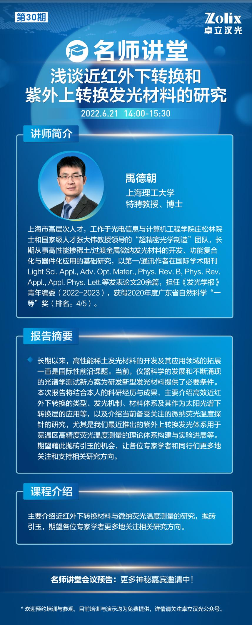 追蹤前沿技術,深化熱門應用聚焦分子光譜、光電探測、高光譜與影像、超快光譜等前沿技術在材料、生醫(yī)、能源科學等熱門領域的前沿發(fā)展與應用,卓立漢光邀請行業(yè)內專家學者以網絡在線形式進行學術探討與交流,為光電技術科研工作者建立全新、高效、開放的學習與交流平臺。