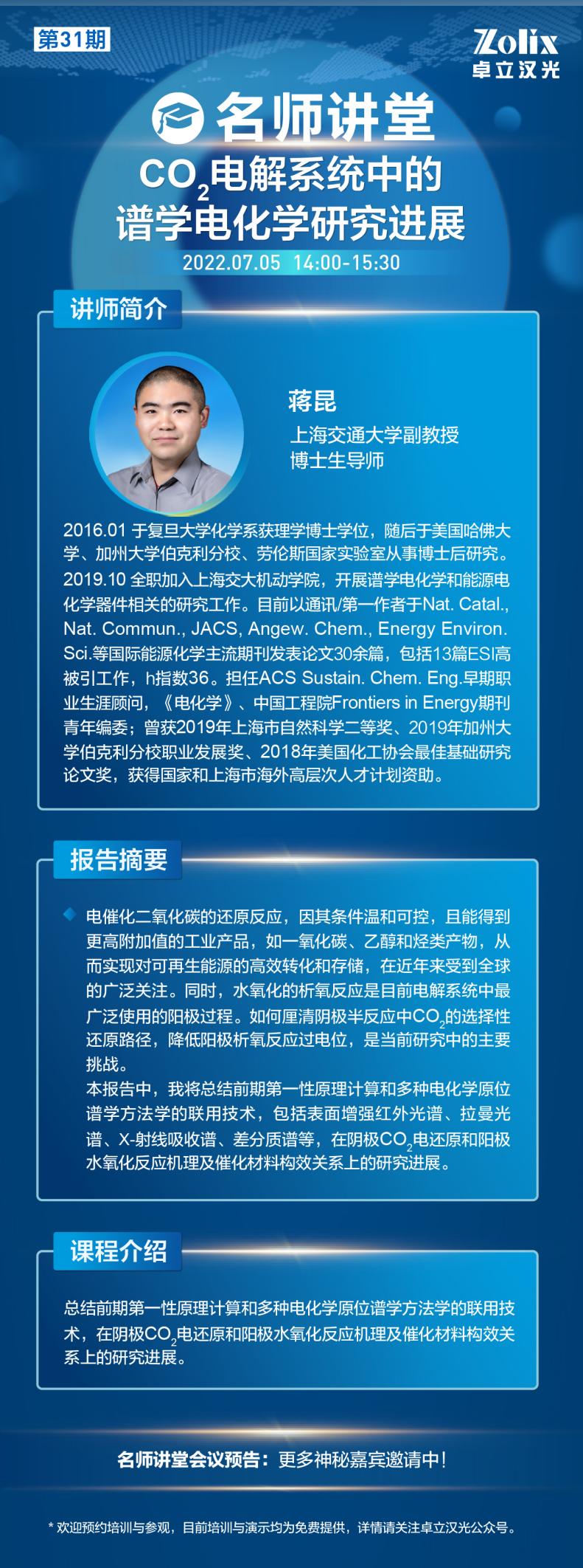 蔣昆,上海交通大學長聘教軌副教授,博士生導師。2016.01于復旦大學化學系獲理學博士學位,隨后于美國哈佛大學、加州大學伯克利分校、勞倫斯國家實驗室從事博士后研究。2019.10全職加入上海交大機動學院,開展譜學電化學和能源電化學器件相關(guān)的研究工作。目前以通訊/*一作者于Nat. Catal., Nat. Commun., JACS, Angew. Chem., Energy Environ. Sci.等國際能源化學主流期刊發(fā)表論文30余篇,包括13篇ESI高被引工作,h指數(shù)36。擔任ACS Sustain. Chem. Eng.早期職業(yè)生涯顧問,《電化學》、中國工程院Frontiers in Energy期刊青年編委;曾獲2019年上海市自然科學二等獎、2019年加州大學伯克利分校職業(yè)發(fā)展獎、2018年美國化工協(xié)會*佳基礎(chǔ)研究論文獎,獲得國家和上海市海外高層次人才計劃資助。