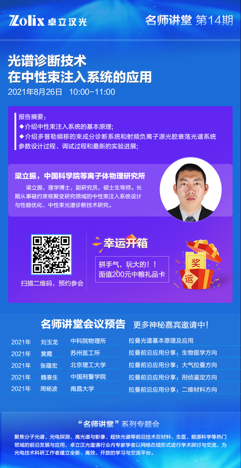 聚焦分子光譜、光電探測、高光譜與影像、超快光譜等前沿技術(shù)在材料、生醫(yī)、能源科學(xué)等熱門領(lǐng)域的前沿發(fā)展與應(yīng)用,卓立漢光邀請行業(yè)內(nèi)專家學(xué)者以網(wǎng)絡(luò)在線形式進(jìn)行學(xué)術(shù)探討與交流,為光電技術(shù)科研工作者建立全新、高效、開放的學(xué)習(xí)與交流平臺。