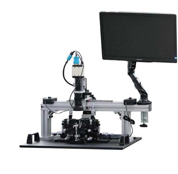 PLC 光分路器耦合系統(tǒng)系統(tǒng)功能:將平面波導(dǎo)器件上的各個導(dǎo)光通路(即波導(dǎo)通路)與光纖陣列中的光纖一一對準(zhǔn),然后點(diǎn)膠、固化。卓立漢光提供的PLC 光分路器耦合系統(tǒng)可提供較高對準(zhǔn)精度!