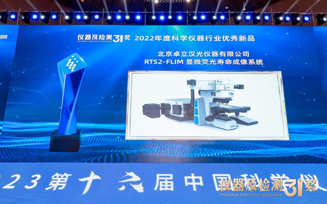 在本屆儀器及檢測(cè)3i風(fēng)云榜頒獎(jiǎng)盛典中,卓立漢光的“RTS2-FLIM顯微熒光壽命成像系統(tǒng)”以其卓越的性能表現(xiàn),在291家國內(nèi)外儀器廠商申報(bào)的674臺(tái)儀器新品中脫穎而出,榮獲“2022年度科學(xué)儀器行業(yè)新品”獎(jiǎng)。業(yè)務(wù)發(fā)展部光譜應(yīng)用專家覃冰作為卓立漢光代表上臺(tái)領(lǐng)獎(jiǎng)。