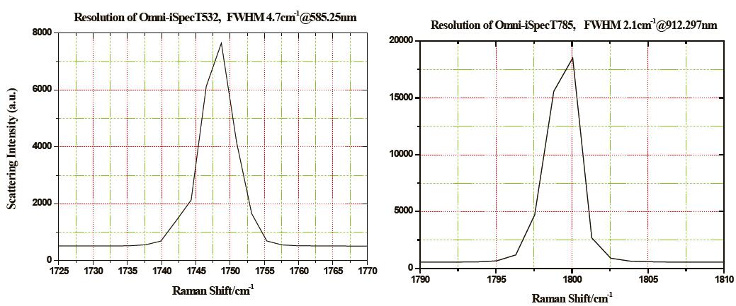 與傳統(tǒng)的C-T 模式光譜儀相比,在30mm 像面上進(jìn)行了出色的光學(xué)像差校正,獲得了極佳的圖像質(zhì)量,從而獲得了更好的空間分辨率和光譜分辨率,也保證了近軸多通道采集的最小串?dāng)_和拉曼偏移