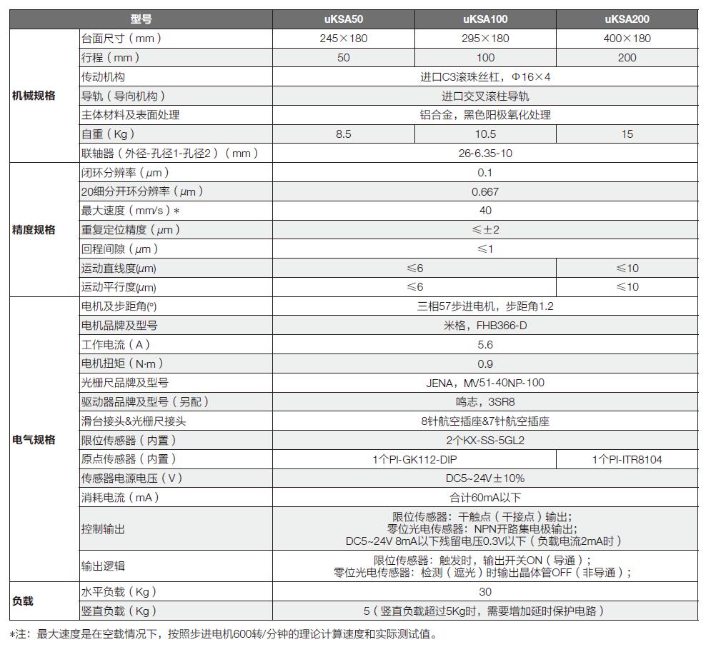 uKSA系列超高精密電動(dòng)直線滑臺(tái)選型表:
