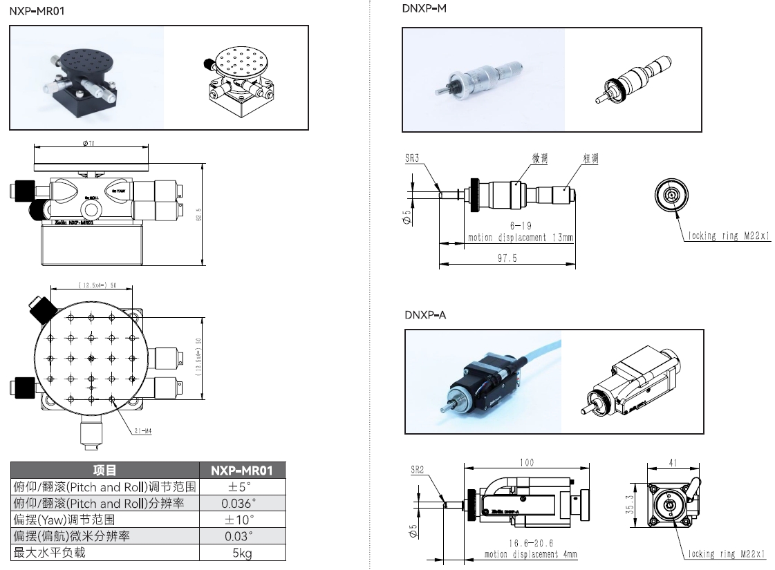 X、Y、Z直線行程為4mm。Rx、Ry、Rz(擺動(dòng)、俯仰和偏轉(zhuǎn))行程為4°(70mrad) |