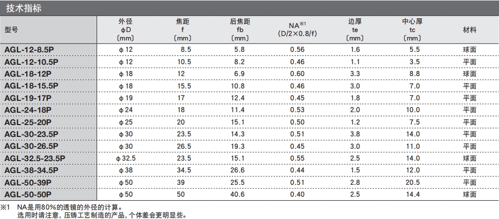 ?將其中一面做成非球面形狀,用單透鏡就可以得到約NAO.5的大發(fā)散角(會聚角)。
