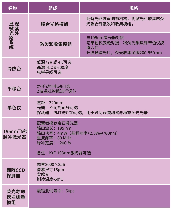 光學部分如圖 1所示,由適配冷熱臺的顯微鏡模組、耦合光路模組、激發(fā)和收集模組(190nm-550 nm)、單色儀和TCSPC系統(tǒng)和側面收集模組構成。