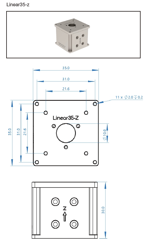 Linearxx-Z極低溫線性壓電升降臺(tái)尺寸圖: