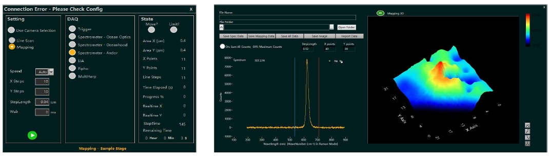Mapping應用實現(xiàn)成像界面直接框選掃描,多種數(shù)據(jù)采集方式可選;支持常用光譜儀,熒光壽命測量系統(tǒng),鎖相放大器等采集設備。偏振掃描APP可實現(xiàn)多種偏振分辨的自動化掃描功能;Mapping測量支持實時數(shù)據(jù)處理與顯示。