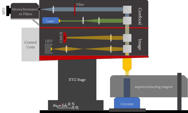 Waynelabs3 的核心研發(fā)成員具有十余年的低溫,強磁場,光譜,自動化控制與采集系統(tǒng)開發(fā)經(jīng)驗。我們將于2024年推出磁場下的微區(qū)光學測試解決方案。它支持最高達12 T磁場,低至2.8 K環(huán)境下的微區(qū)光學測試。包括熒光,熒光壽命,反射光譜,拉曼光譜,偏振分辨二次諧波,光電流,磁光克爾與反射磁圓二色。主要應用于磁性二維材料或磁性薄膜材料與器件的磁性表征,居里溫度表征,表面拓撲磁結(jié)構(gòu)表征,磁疇掃描成像。