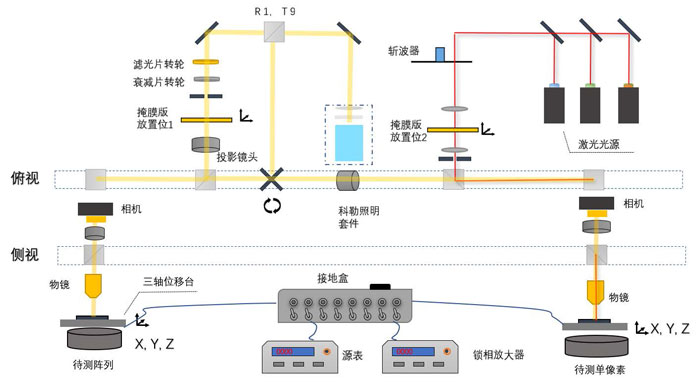 測(cè)試光源:寬譜光:400 - 1100 nm(標(biāo)配);400 - 2000 nm(可選) 激光:375 - 1064 nm (選配)