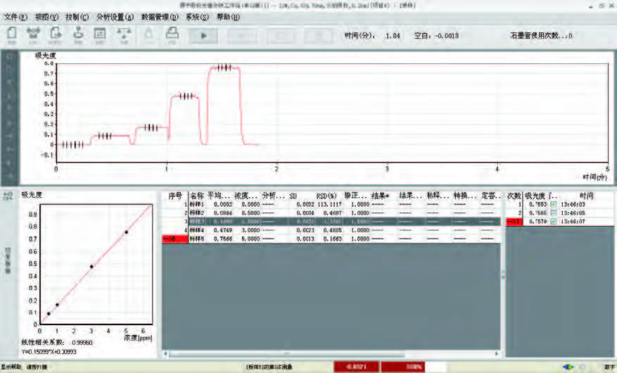 Cu特征濃度:≤0.02 μg/mL/1% 檢出限:≤0.003 μg/mL