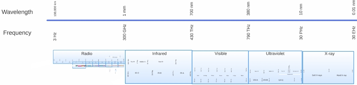 紅外波,是電磁頻譜中的重要組成部分。相較于我們常說(shuō)的可見(jiàn)光波段,是人眼所無(wú)法看到的成分。紅外輻射覆蓋從700nm到1mm的范圍,常見(jiàn)地按照波段進(jìn)行區(qū)分,紅外分為以下幾個(gè)部分:近紅外(0.75-1.4μm)、短波紅外(1.4-3μm)、中紅外(3-8μm)、長(zhǎng)波紅外(8-15μm)、遠(yuǎn)紅外(15-1000μm),所以近中紅外區(qū)我們大致概括為700nm到8μm范圍。