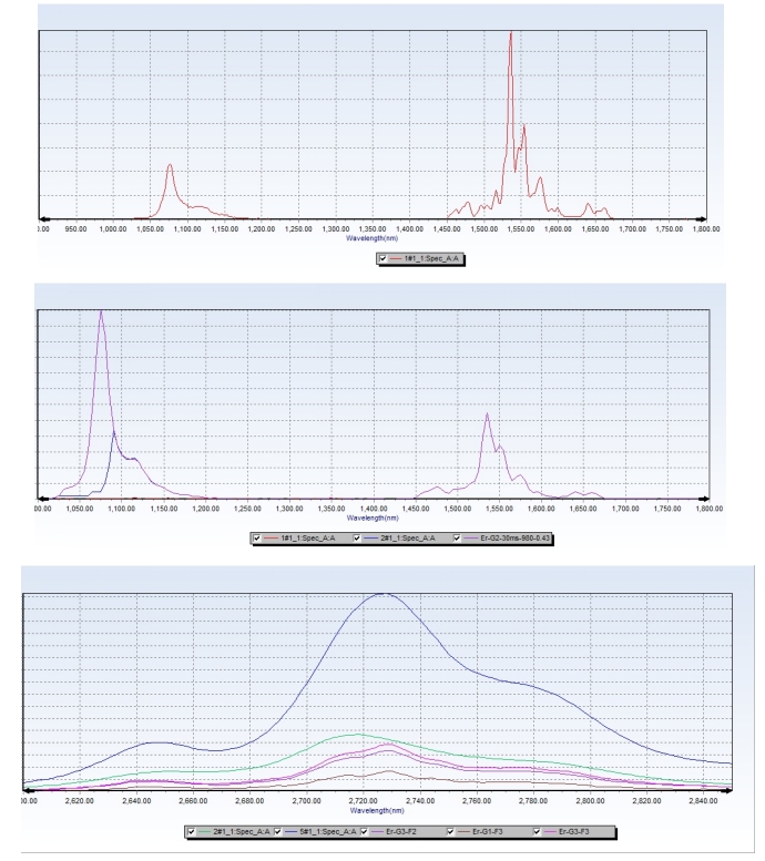 配置808nm,980nm激光器摻Er離子樣品發(fā)射在1550nm,2730nm左右。