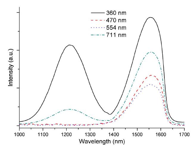 300K不同激發(fā)波長(zhǎng)下Bi:CsI 晶體的近紅外發(fā)光光譜