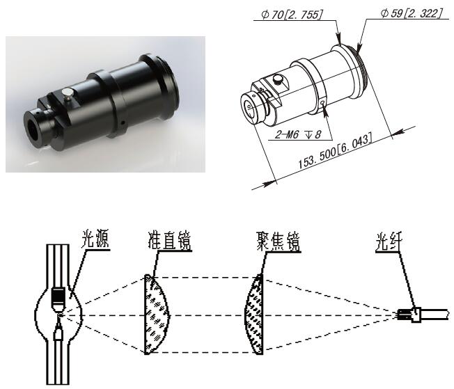 適合于光源已安裝150mm 焦距透鏡的光源輸出,兼容光譜儀安裝或無安裝SD 濾光片輪。