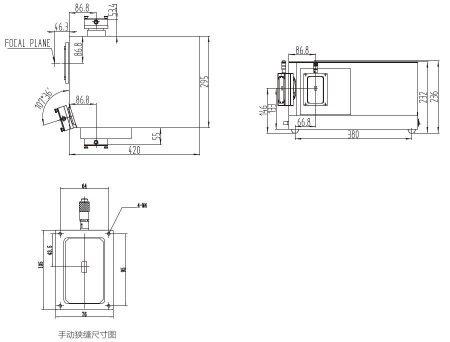 縫寬0.01-3mm連續(xù)手動可調,可選配自動狹縫??p高:2、4、14mm可選 |