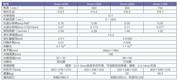 光柵規(guī)格型號(hào)表5:光柵(本系列適用于Omni-λ200i系列光譜儀)