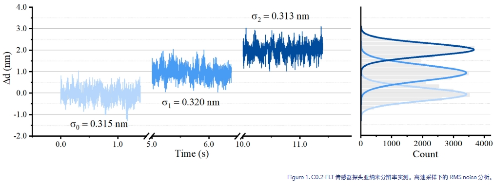 C0.2-FLT 傳感器搭配 Faraday.03 監(jiān)視器實(shí)測數(shù)據(jù),運(yùn)動步長 1 nm