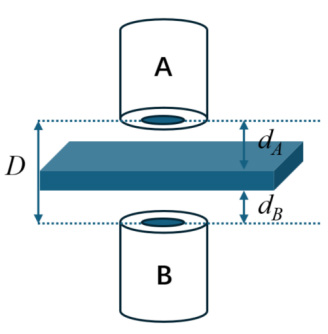 測量原理: 在被測導(dǎo)體兩側(cè)相對安裝兩只傳感器( Sensor A 和 Sensor B),其端面之間的距離 D 固定。 厚度的計(jì)算公式為 Thickness= D - (dA + dB),其中 dA 和 dB 分別為兩只傳感器所測到的金屬表面距離的精確讀數(shù)。