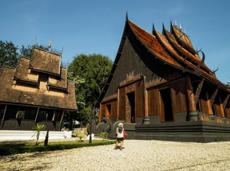 除了著名的白廟,清萊還有一座讓人震撼的黑廟。黑廟并不是真的廟,只是因?yàn)檎w色調(diào)是偏黑色,再加上清萊已經(jīng)有了白廟,才被人稱(chēng)為黑廟,黑廟其實(shí)是由一位當(dāng)?shù)厮囆g(shù)家Thawan Duchanee設(shè)計(jì)建造的黑屋博物館,其中放置了許多他收藏的珍貴古董,以及許多牛角、頭骨、蟒蛇皮等標(biāo)本,氣氛壓抑;人們常常將其與白廟并提,白廟為天堂,黑廟為地獄。