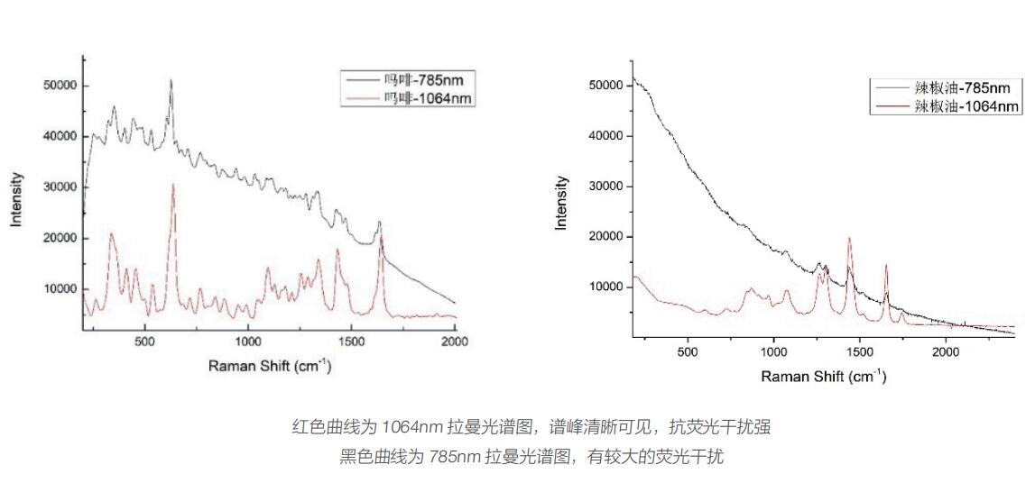 1064nm 手持式拉曼光譜儀可以有效避免熒光干擾現(xiàn)象,現(xiàn)場直接鑒定大多數(shù)高熒光物品,鑒定物品種類更加豐富與準(zhǔn)確。