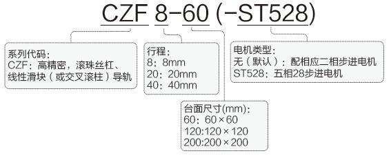 CZF系列高精密電動升降滑臺命名規(guī)則: