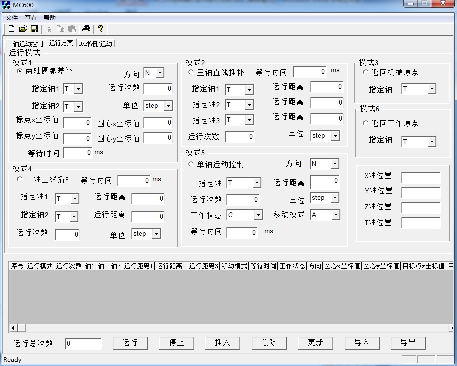 ● 運(yùn)行方案界面,可對單軸或多軸運(yùn)動,設(shè)置運(yùn)行方案,方便進(jìn)行連續(xù)地自動運(yùn)行