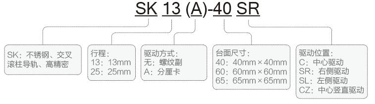 高精密手動(dòng)直線(xiàn)滑臺(tái)SK系列命名規(guī)則