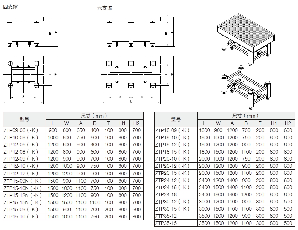 ZTP系列半膜片式氣浮隔振光學(xué)平臺(tái)命名規(guī)則: