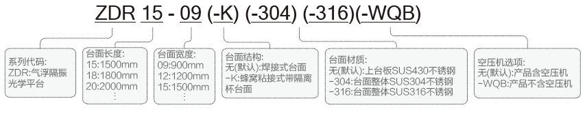 ZDR系列獨立型氣浮隔振光學平臺選型表:
