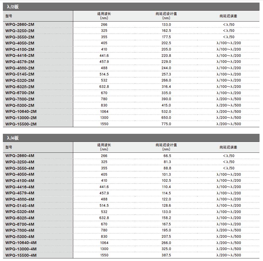 ?射入適用波長之外的波長的光線時,不能得到技術(shù)指標那樣的位相差。波長發(fā)生1%偏離時,1/2波長板會產(chǎn)生1.8度的相位差偏差,1/4波長板會產(chǎn)生0.9度的相位差偏差。