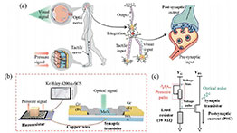 作者們開發(fā)了一種簡單、直接且成本低廉的方法來創(chuàng)建一種觸覺和視覺的人工多感官集成神經(jīng)系統(tǒng),通過連接壓阻器和石墨-MoS2-石墨(Gr-MoS-Gr)場效應晶體管(FET)。該系統(tǒng)不僅單獨通過壓力和光學刺激模擬突觸可塑性行為,而且在協(xié)同效應的刺激下表現(xiàn)出比單一感官模擬時更強的感知能力。通過改變壓力的幅度、壓力的頻率和光信號的強度,模擬了平坦或粗糙的道路、行走或跑步的運動狀態(tài)以及白天或夜間的外部照明環(huán)境。另外,通過結合上述刺激條件,設計并成功模擬了一系列可區(qū)分的日常生活場景,展示了該設備在多感官集成仿生系統(tǒng)中的應用潛力。