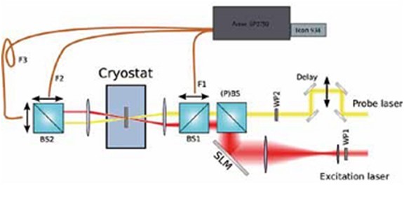 在實驗中采用脈沖鈦寶石激光器,空間光調(diào)制器,5K低溫制冷機(jī),收集光路以及Andor SR750光譜儀以及 Andor DU934 深耗盡型CCD。在極化實驗中,為了能夠測試內(nèi)部空穴的特性,采用光纖收集反射或者透射的光。而在量子點(diǎn)的實驗中,收集的是量子點(diǎn)的發(fā)光。通過光纖,我們可以選擇不同的空間點(diǎn)進(jìn)行收集。