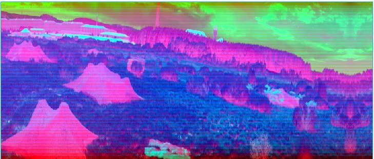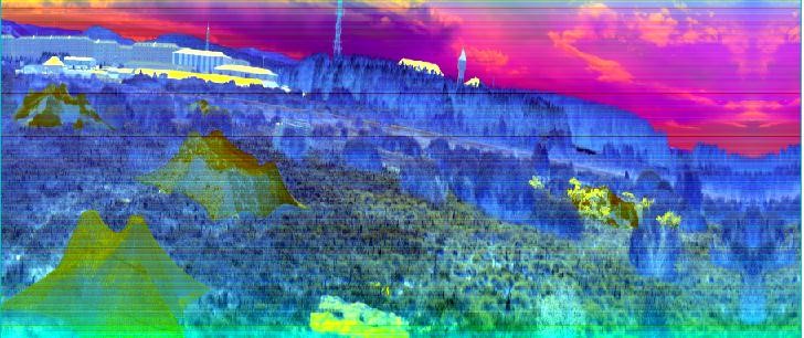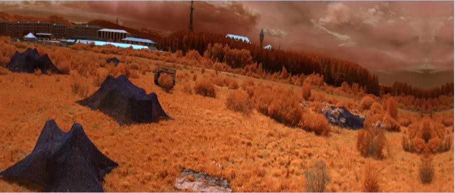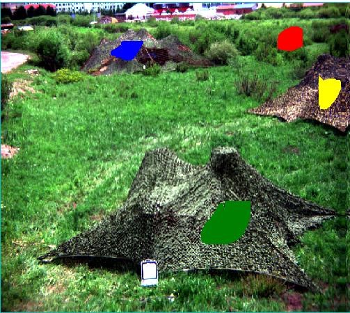 綠色植被、樹木等綠色的目標(biāo)與偽裝目標(biāo)在整個(gè)大環(huán)境下都顯示為綠色,而利用短波紅外相機(jī)進(jìn)行拍攝則可以區(qū)分開真實(shí)的綠色植被(或者樹木、草)是與偽裝目標(biāo)不一樣的。