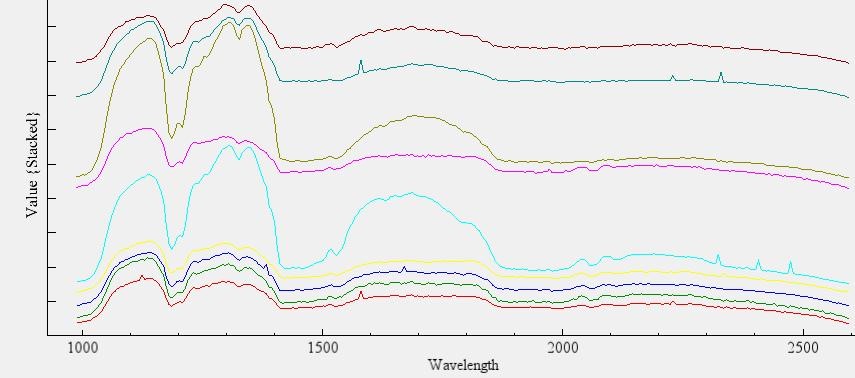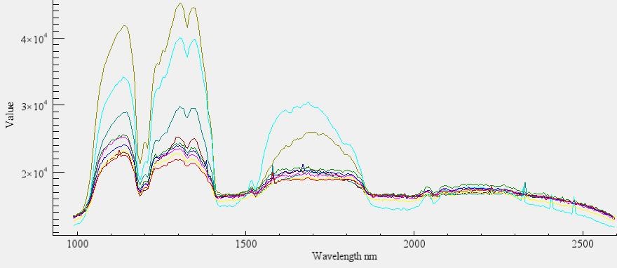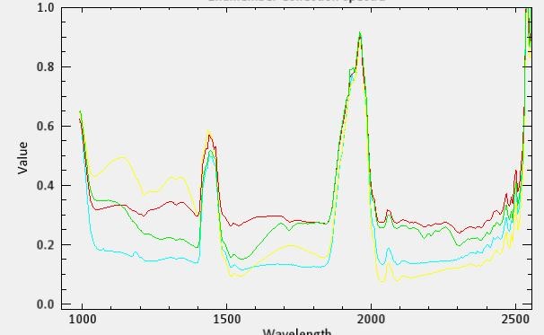 選取不同的目標(biāo)對(duì)象,獲取相應(yīng)的光譜,植被的光譜在680nm以后分反射率會(huì)提高,而非植被所表現(xiàn)出來的紅邊效應(yīng)與真實(shí)的植被的紅邊效應(yīng)有很大的差別。