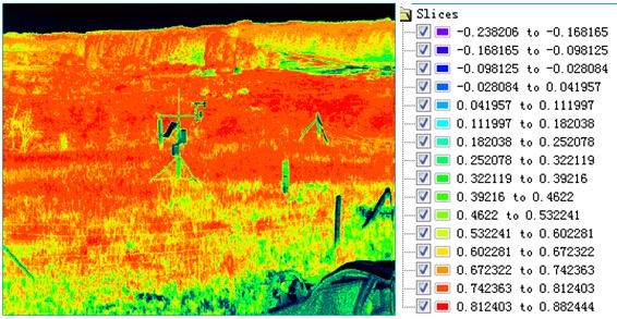 不同的目標(biāo)物(或植被)的歸一化植被指數(shù)是不同的,利用植被標(biāo)準(zhǔn)算法進(jìn)行處理后可以得到相應(yīng)的指數(shù)系數(shù)。