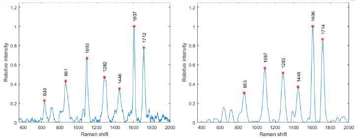 科研式拉曼實驗條件:1064nm激光器,激光功率200mW-250mW,光譜范圍200cm-1-2500cm-1,采集時間15s。