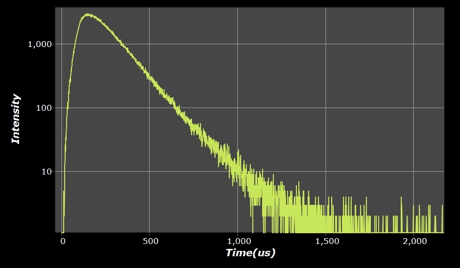 圖4壽命測(cè)試光譜圖,Ex=980nm脈沖激光器,Em=539.5nm