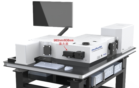 本文使用Zolix的OmniFluo990 穩(wěn)態(tài)瞬態(tài)熒光光譜儀表征了NaYF4:YbEr材料基于雙光子吸收的上轉(zhuǎn)換發(fā)光性質(zhì)。