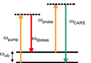 圖3:CARS原理簡圖和實驗裝置簡圖