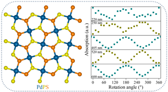 圖1. PdPS的結構示意圖和不同波長照射下的偏振光吸收