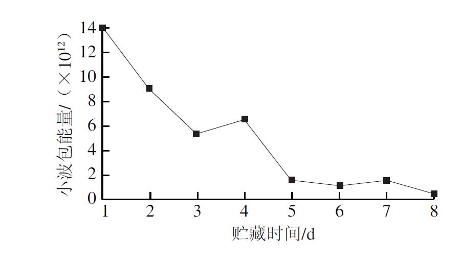圖3 不同貯藏日特征激發(fā)波長下發(fā)射光譜小波包分解*低頻段能量總和變化